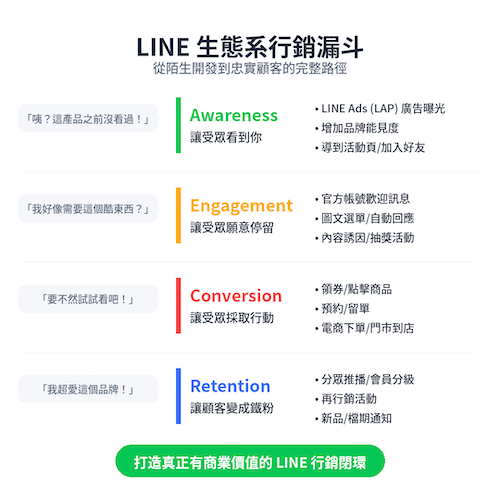 一個核心觀念值得記住:好友數不等於行銷資產。 能不能依照不同互動狀態分眾溝通、辨識需求、設計對應的轉換路徑,才是 LINE 行銷真正厲害的地方。