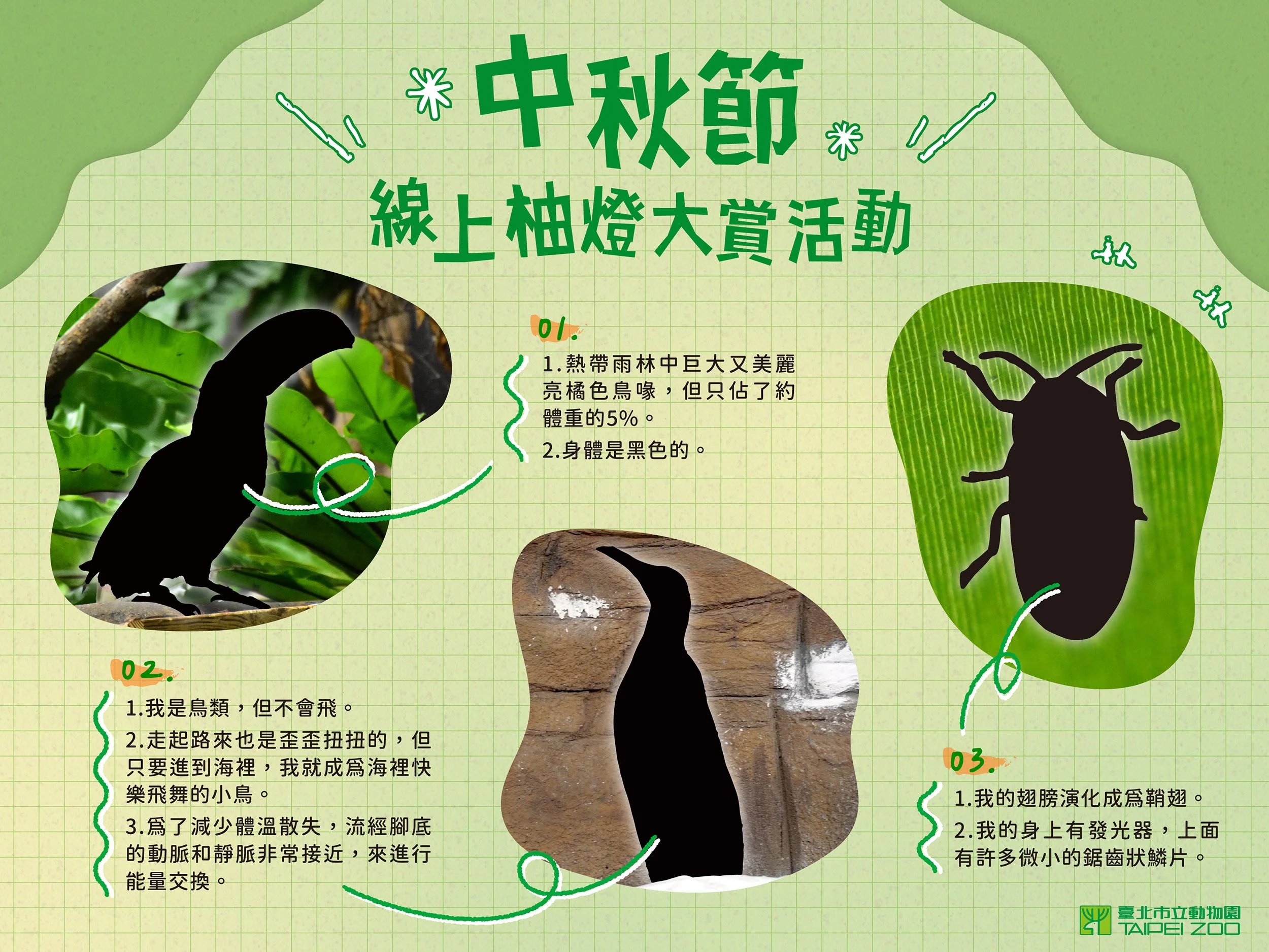 說到互動,就來看看臺北市立動物園中秋節極富趣味性的宣傳活動。與工研院合作,為了推廣節能教育,特別舉辦了「中秋節線上柚燈大賞活動」。根據動物園粉絲頁的線索,將題目所描述的物種擇一刻在柚子上製作成柚燈,再將柚燈拍照上傳到官方粉絲頁,就有機會抽中限量精美禮品。喜愛分享是大部分人的天性,尤其是類似像這樣遊戲類型的貼文,能更刺激大家參與活動,進而達到宣傳效益。