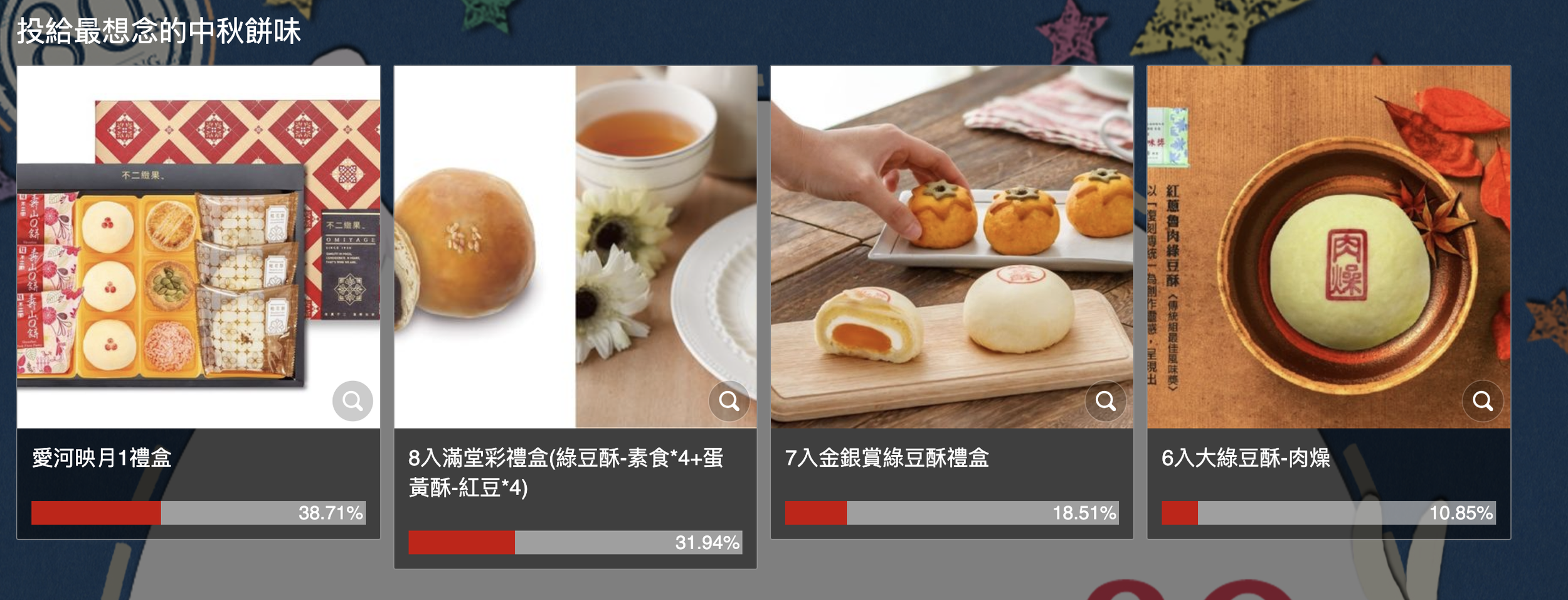 臺灣雖然什麼沒有,但帥哥正妹跟美食最多! 既然大家都賣中秋美食,那該如何營造品牌深刻印象? 首先先教你一招,跟用戶建立關係很重要。而在社群時代,得到任何用戶的回饋相較過去容易很多,因此創造一個跟用戶互動的趣味機制就是重點課題所在。像是老牌名店「不二緻果」就在自己的官網舉辦投票活動,選出「最想念的中秋滋味」。既能產生互動,又能瞭解消費者的選擇喜好,當然獎項不外乎也是提供自家產品,贈送幸運兒票選前兩名經典組合。把知名商品度打好打滿,如果能將此活動串聯在社群上,利用社群媒體的分享功能,定會將觸及效率最大化。用戶可能先前對你的品牌毫無所知,但只要參與了類似的活動,在思考中秋送禮時,你的商品印象一定會浮現在消費者腦海裡。如果後續還搭配再行銷或是其他行銷活動的話,成交機會更是大增,考慮到只付出幾盒公關禮盒的成本,這筆投資還是相當划算的。