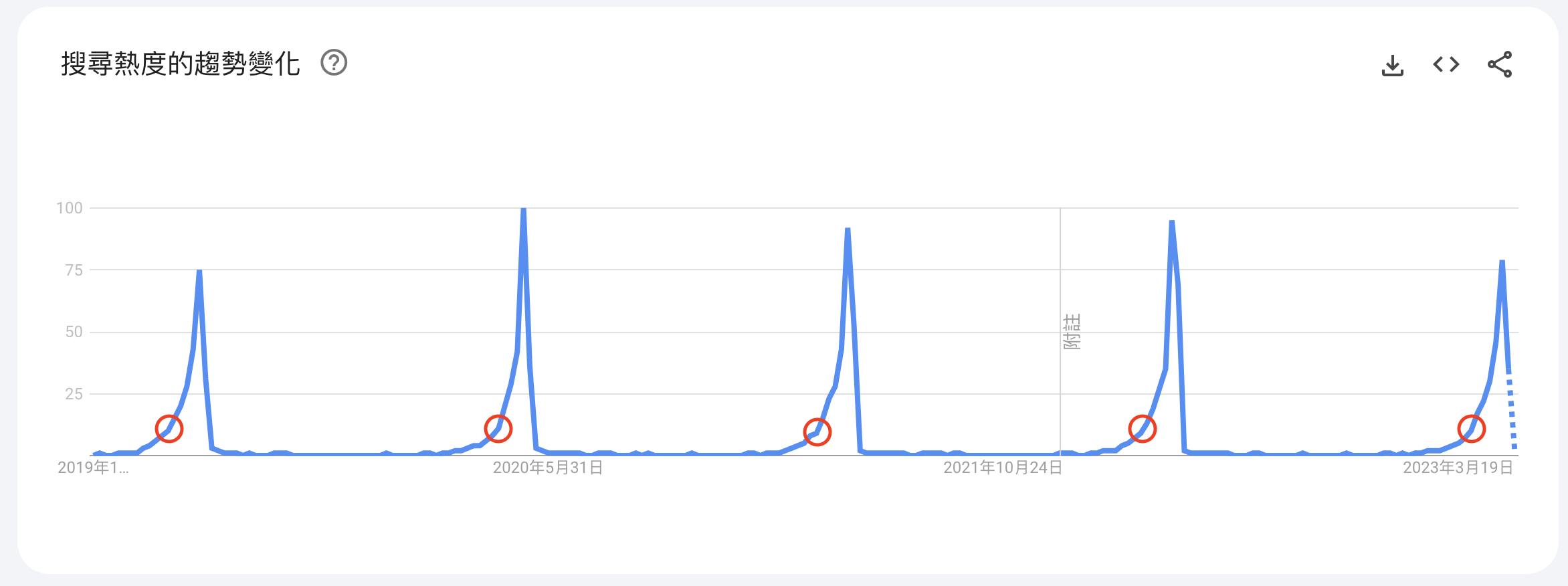 資料來源:Google Trends 2019~2023「母親節」搜量變化